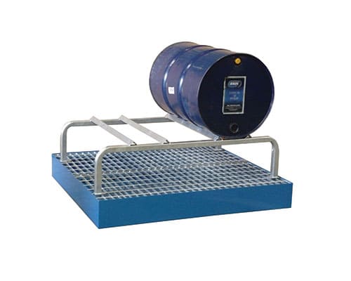 DST Drum Rack – designed to safely store up to two standard 205 litre drums, 535mm above floor level and provide complete protection against costly and environmentally damaging chemical spills.